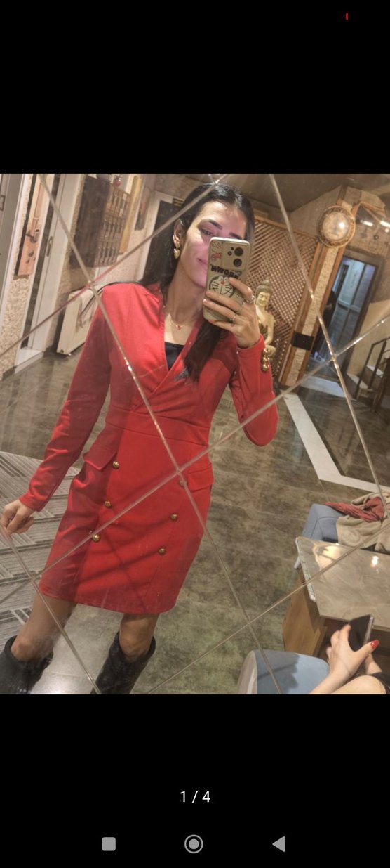 Kırmızı Düğmeli ceket Elbise