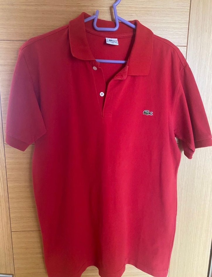 Yumuşak süet kumaştan yapılmış, parlak kırmızı renkli, düğmeli ve yakalı kısa kollu erkek polo tişörtü. Rahat kesimiyle günlük sokak stiline uygundur. Orijinal değildir