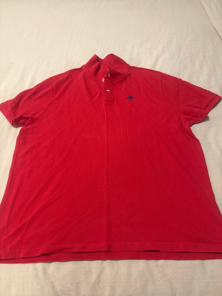 Kısa kollu, düğmeli yakalı, bol kesim kırmızı erkek polo tişört. Parlak pamuk kumaştan üretilmiş, günlük kullanım için uygundur. SPX mağazasının kendi markası, mağazasından alındı. Çok az kullanıldı. Temiz ve hasarsızdır. Ölçüleri görsellerde var.