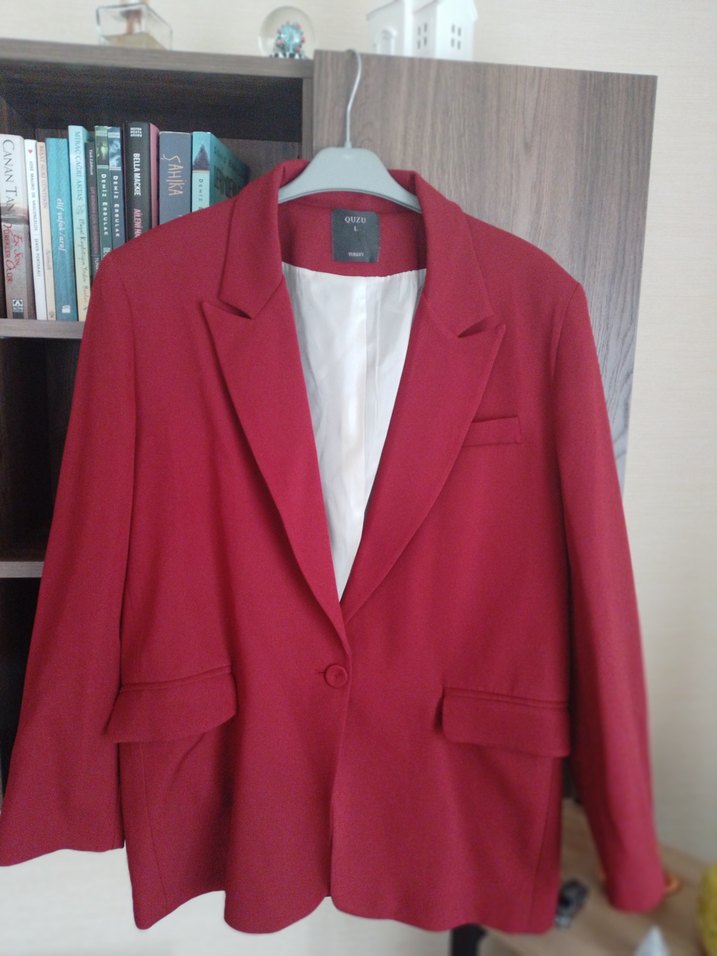Kırmızı Düğmeli Kadın Blazer Ceket