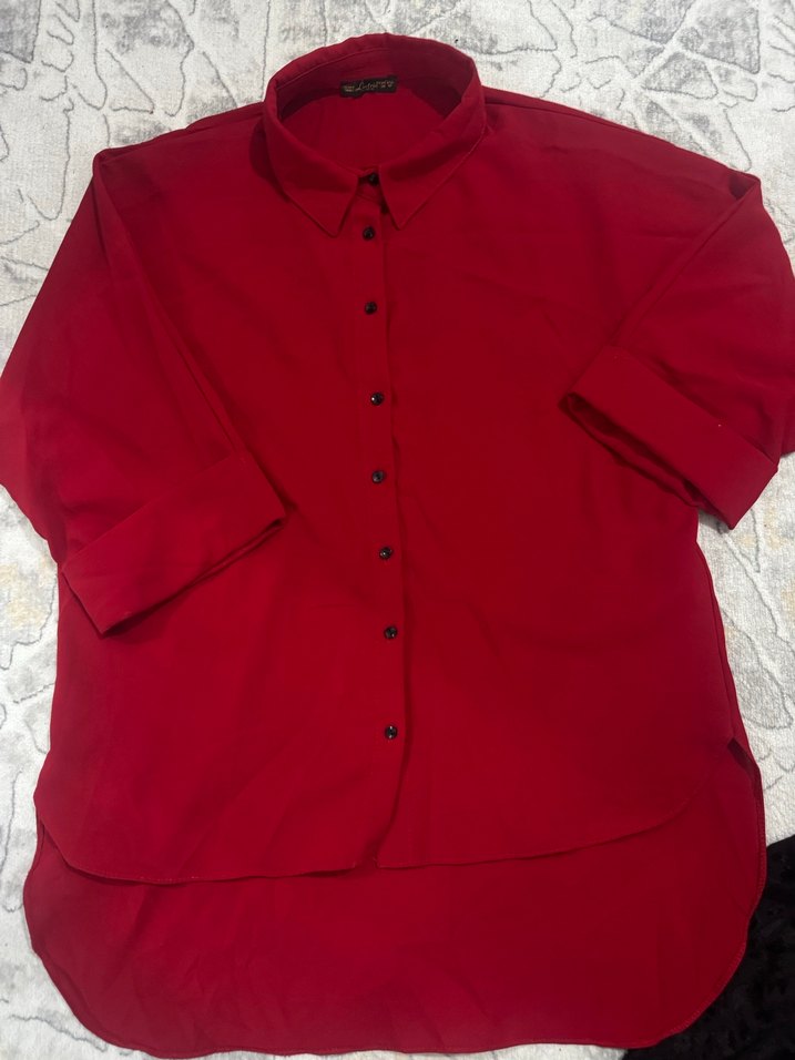 Kırmızı Düğmeli Kadın Gömlek