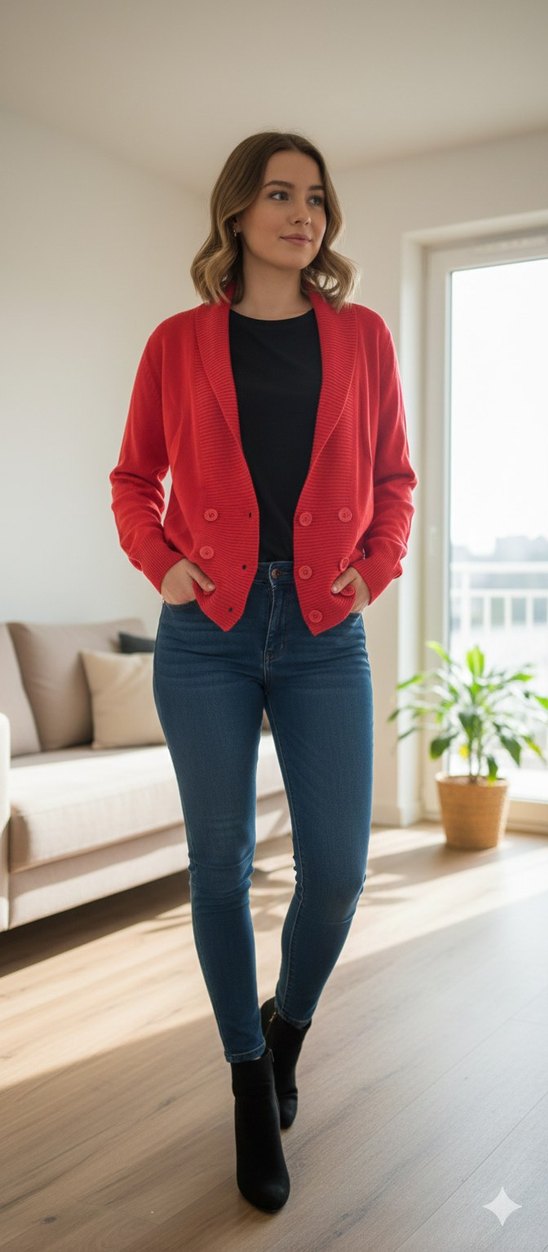 kırmızı renkte, kadın Hırka s beden kışlık düğmeli ve normal boy midi uzunluğunda, cepli kadın hırka. Notch yaka ve uzun kollu spor şık 1-2 kez giyildi defosuz lekesiz tertemiz yeniden farksız kaçmaz fiyatta #hırka #kırmızı