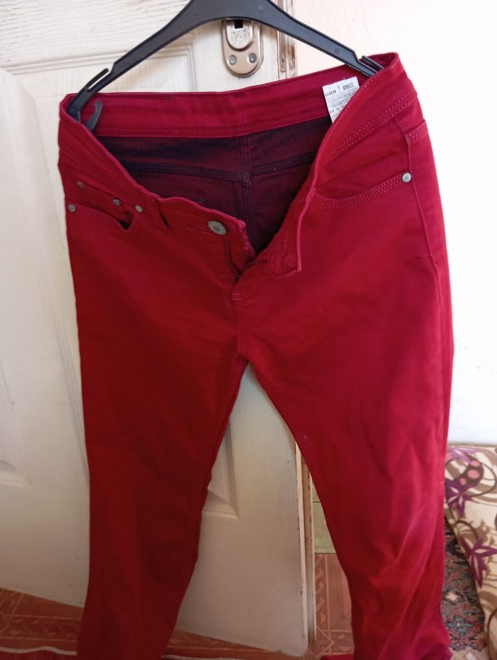 Kırmızı Düğmeli Kadın Kumaş Pantolon