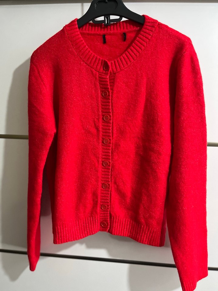 Kırmızı Düğmeli Kadın Triko Hırka