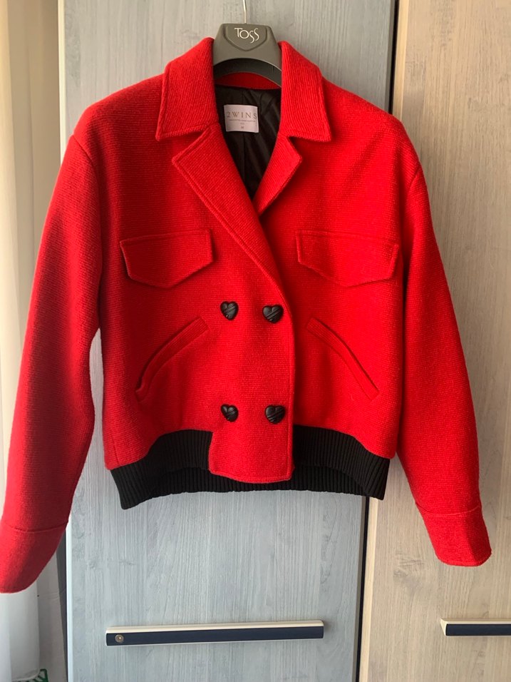 Kırmızı, düğmeli, yakalı ve uzun kollu mini ceket. Regular kesim ve yumuşak, sıcak kumaştan üretilmiştir. Günlük sokak stili için uygundur. 2wins markadır