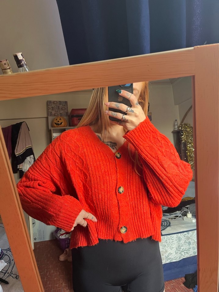 Addaxtab almıştım gerçekten çok kaliteli ve çok kalın bi hırka rengi tam gözüktüğü gibi canlı kırmızı narçiçegi arası bişet. Artık tüm kıyafetlerim büyük geldiği için mecbuten biçogunu satıyorum