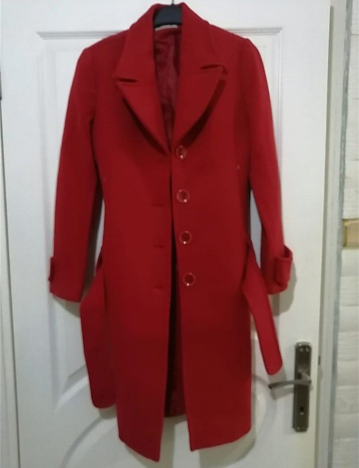 Kırmızı Düğmeli Uzun Kaban