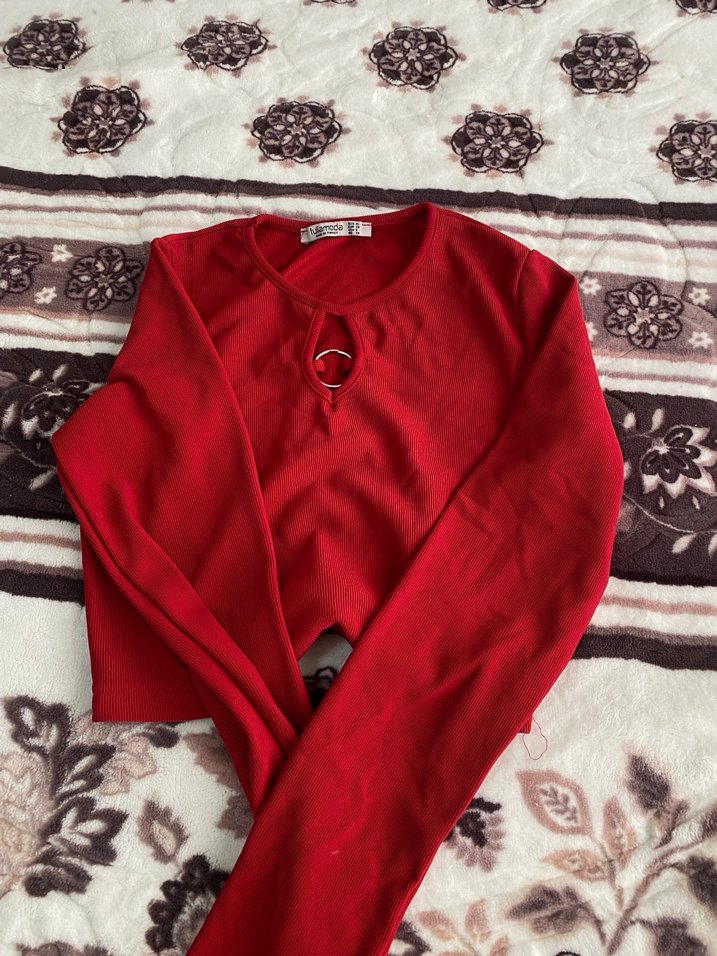 Yumuşak ve sıcak kumaştan, düğmeli detaylı, kruvaze yakalı, kırmızı uzun kollu dar kesim kadın kazak. Rahat sokak tarzı için uygundur.