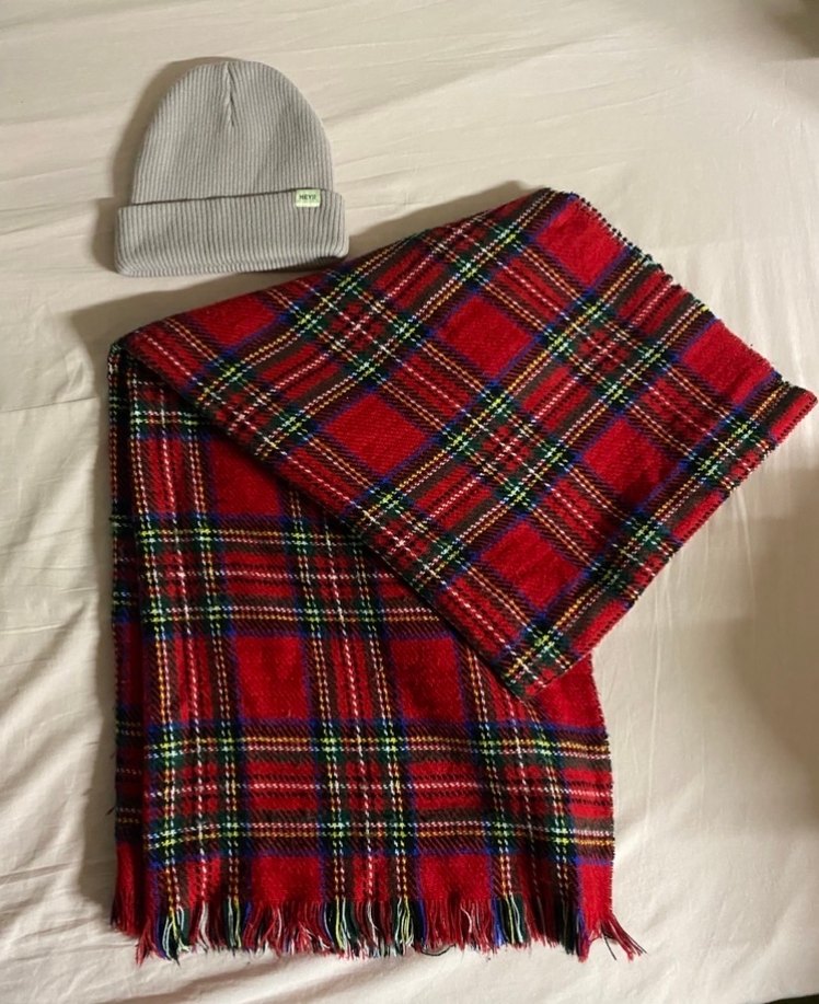 Kırmızı ekose desenli, çok renkli ve normal uzunlukta erkek atkısı. Püsküllü kenarlarıyla rahat ve bohem bir tarz sunar.