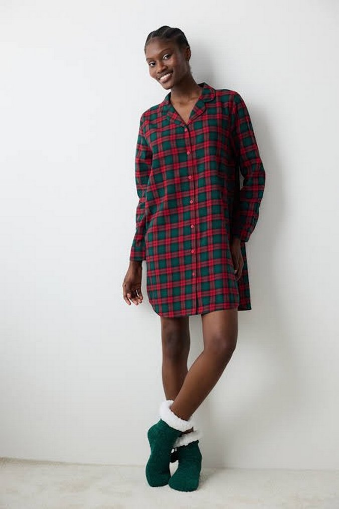 Kırmızı Ekose Desenli Rahat Kadın Gecelik