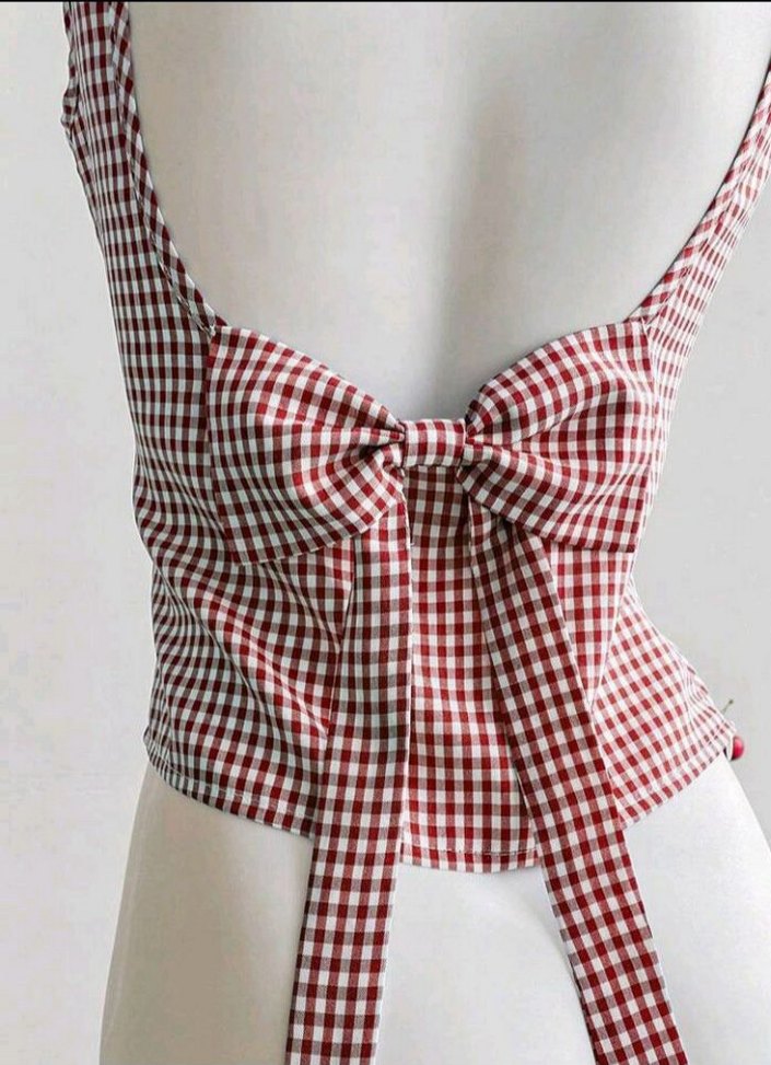 kırmızıı ekose desenli sırtı açık ister günlük ister şık bir kombinle parti sarısiyah