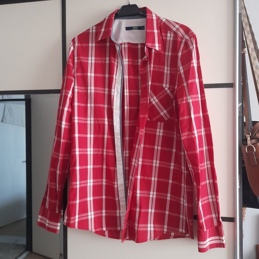Parlak kırmızı ekose desenli, uzun kollu, yakalı ve düğmeli erkek gömleği. Rahat kesimi ve sentetik kumaşıyla günlük kullanıma uygundur.