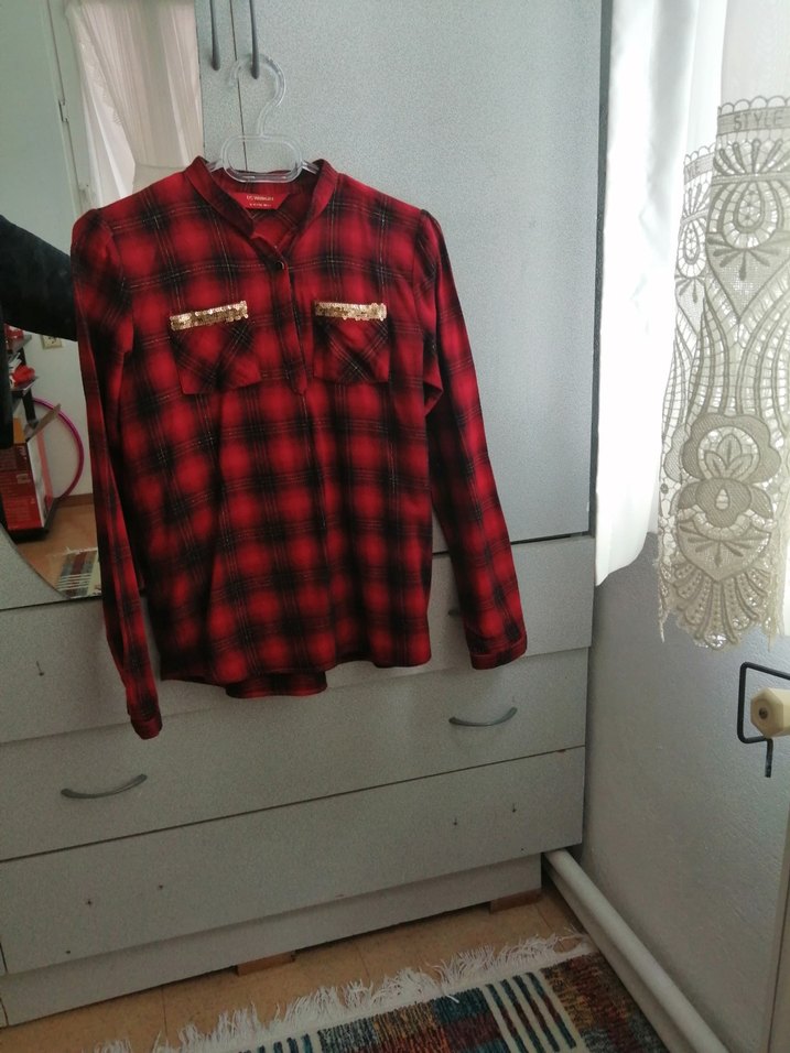 Kız çocuk kırmızı ekose gömlek.
