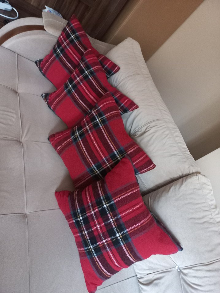 Kırmızı ekose desenli yastık kılıfları, klasik ve sıcak bir dokunuş sağlar. ️