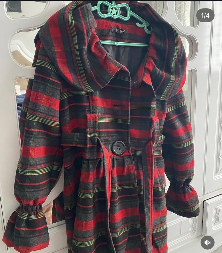 Kırmızı Ekose Düğmeli kadın Kaban