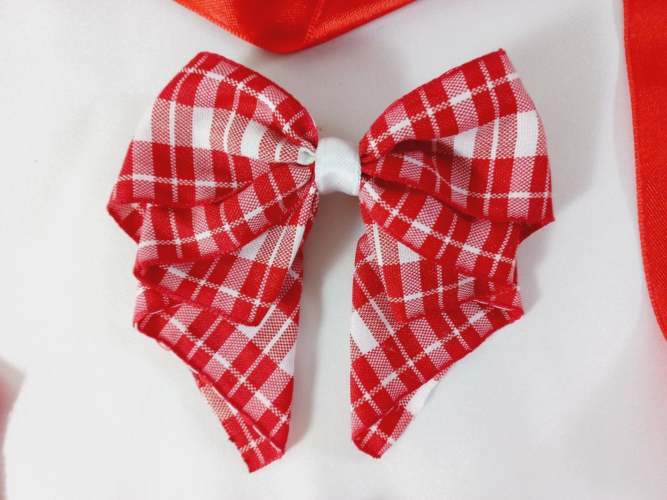 Kırmızı Ekose Fiyonk Saç Aksesuarı