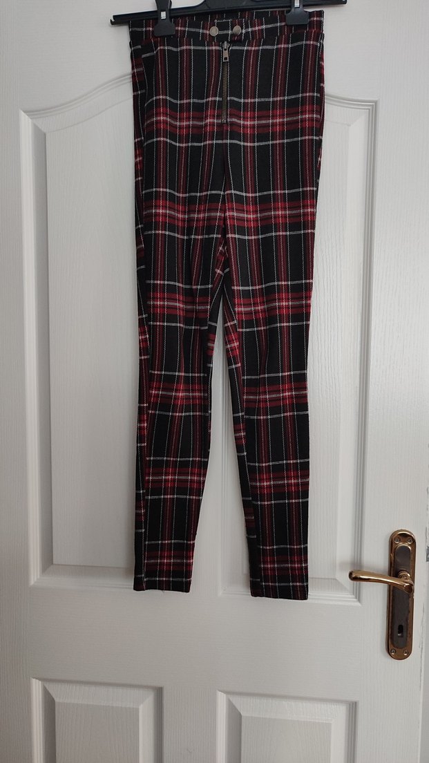 Kırmızı Ekose Kadın Kumaş Pantolon