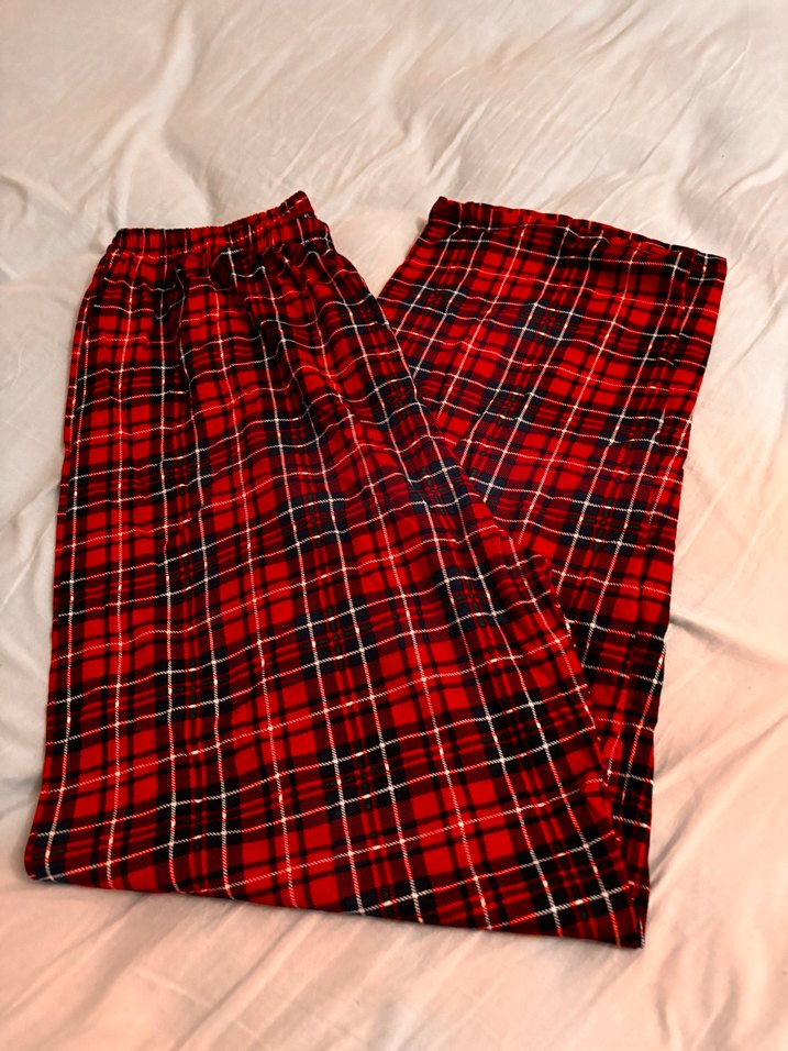 Koyu kırmızı ekose desenli, pileli ve bol kesim Kadin pijama altı, rahat ve konforlu bir kullanım sağlar.
