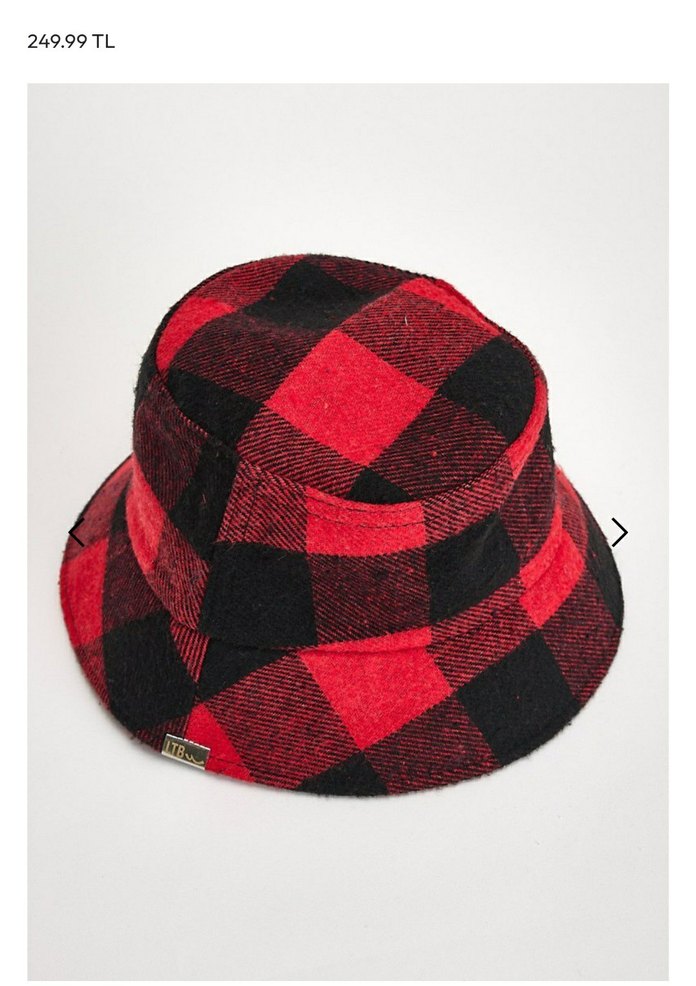 Koyu kırmızı ve siyah ekose desenli şapka.ilk fotoğraf markanın site görselidir.iade yoktur.