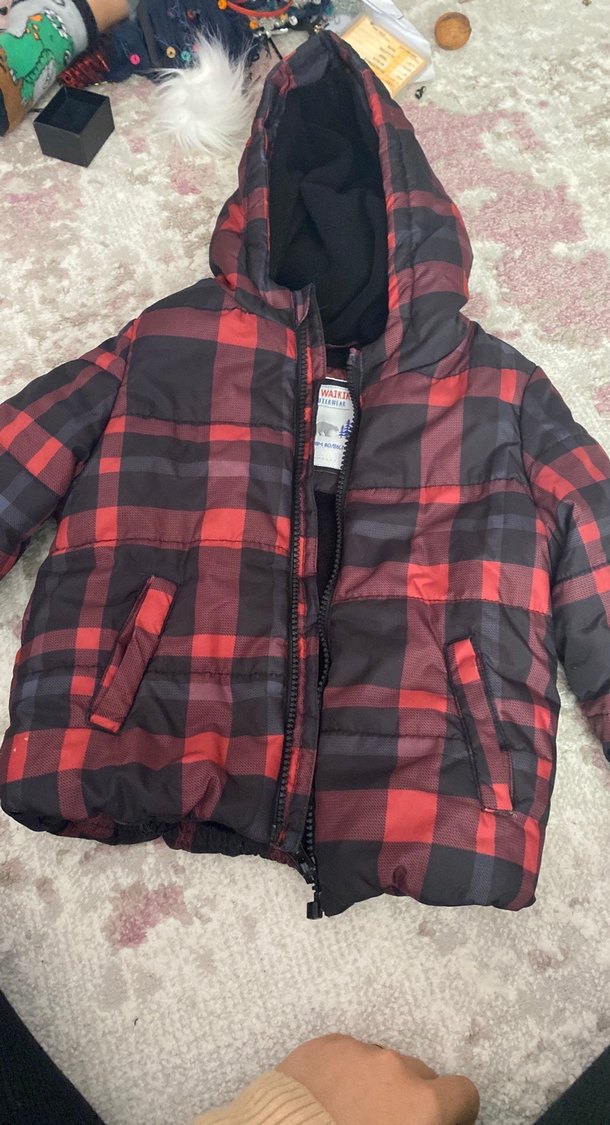Kırmızı Ekose Kapüşonlu Erkek Çocuk Mont