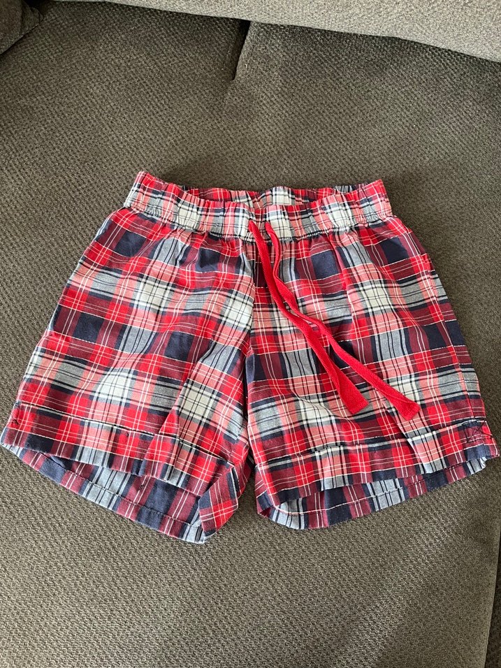 Yumuşak pamuklu, düğmeli ve bağcıklı beliyle rahat kesim kırmızı ekose mini şort, sokak modasına uygun renkli tasarım sunar.