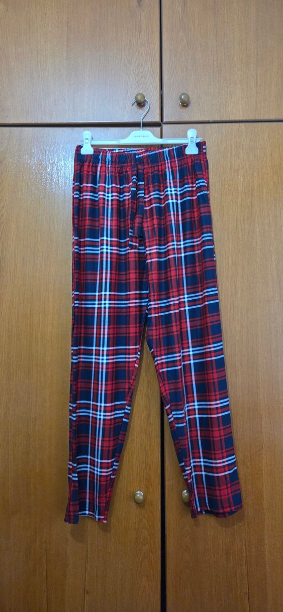 pijama altı, rahat kesim ve lastikli bel bandına sahip, yumuşak kumaştan yapılmış renkli kırmızı ekose deseniyle konfor sunar.