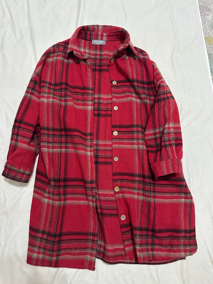 Kırmızı Ekoseli Düğmeli Kadın Gömlek