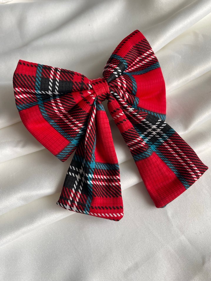 Canlı renklerde, sentetik kumaştan yapılmış kırmızı ekoseli fiyonk. Pop kültür ve Paris esintili tasarımıyla dikkat çeker.