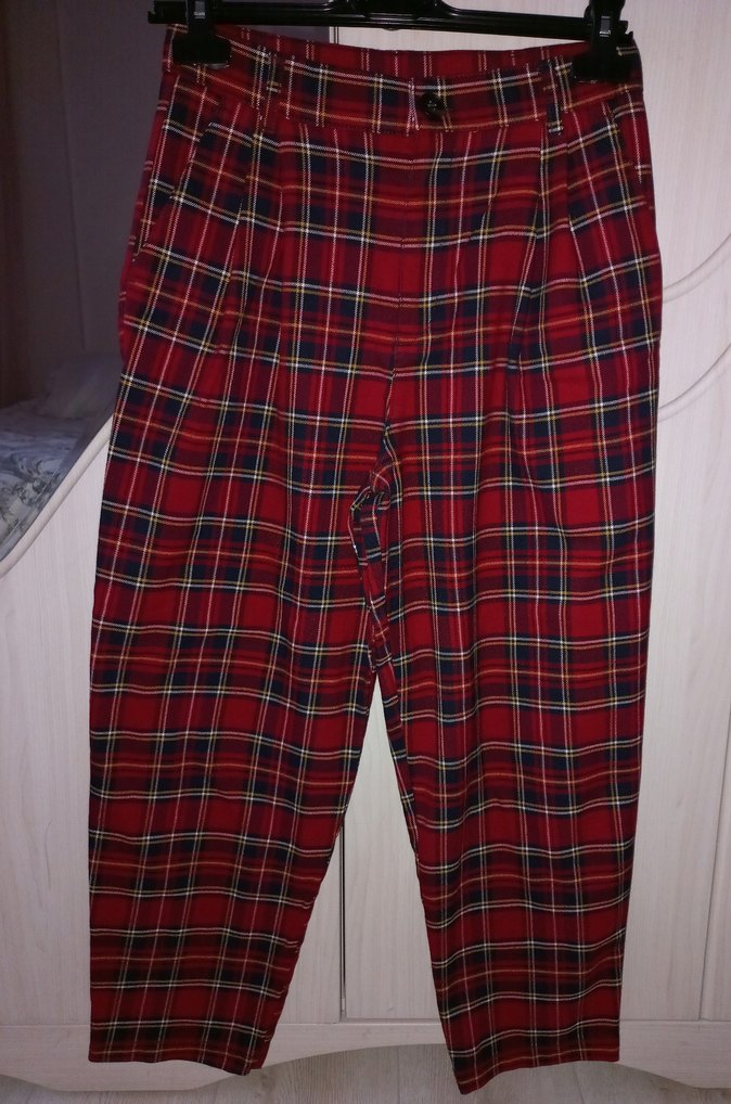 Kırmızı Ekoseli Kadın Kumaş Pantolon
