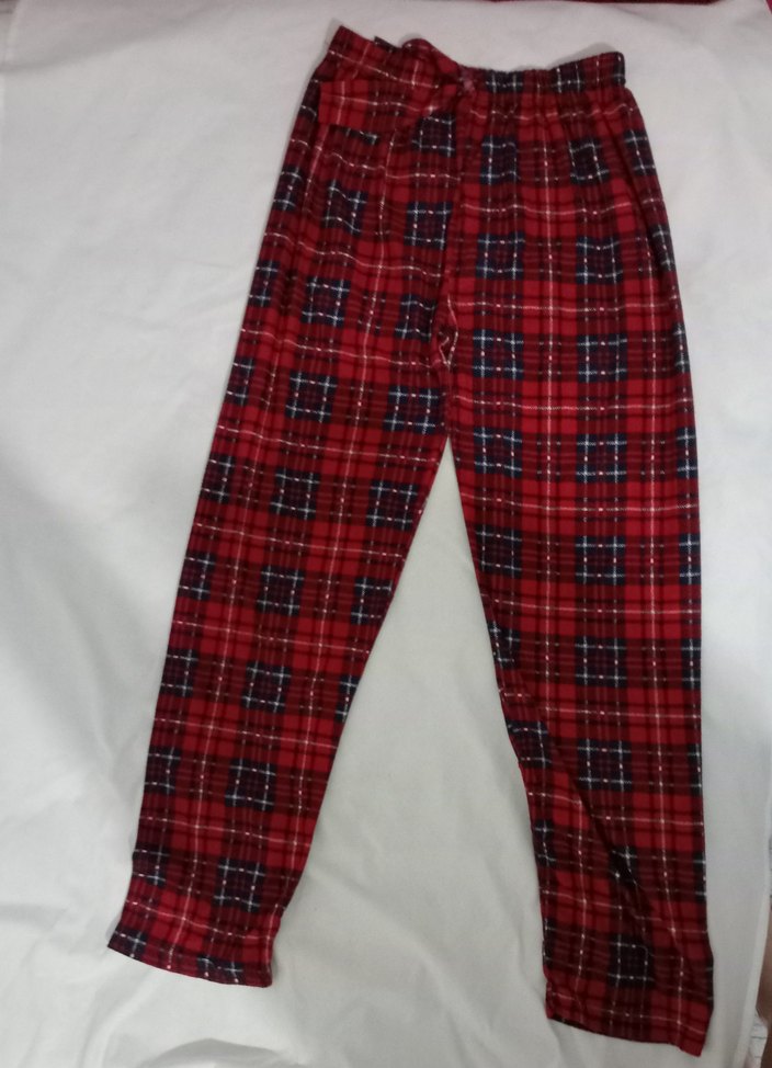 Kırmızı ekoseli, pileli ve bol kesim kadın pijama altı, rahat ve günlük sokak tarzına uygun.