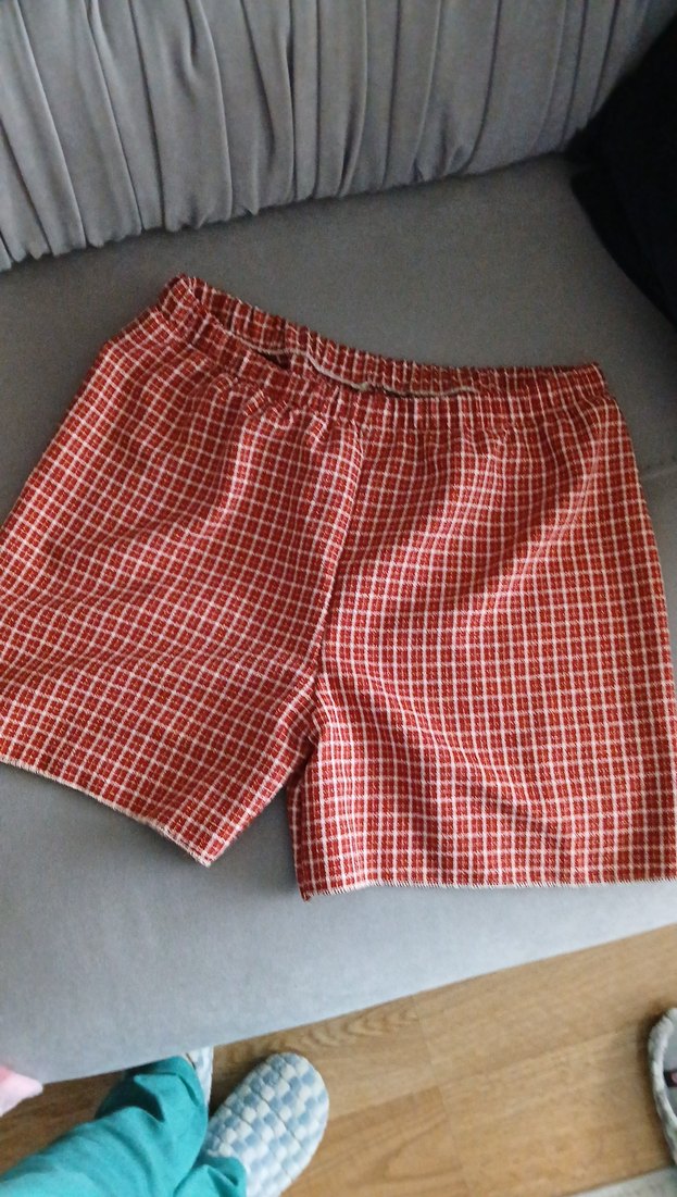 Kırmızı ekoseli desenli, lastikli bel bandına sahip kadın şort. Yumuşak ve nefes alabilen kumaştan üretilmiştir.