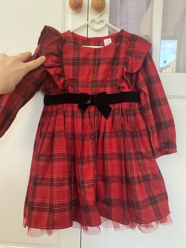 Ürün 24-36 ay için uygundur, 3 yaşındaki kızıma yılbaşı gecesi giydirmek için alınmıştır ve üstüne zor olduğu için bir daha giydirilmeden kalmıştır. Yeni sezon tertemiz ürün. Altın rengi simli detayları var.