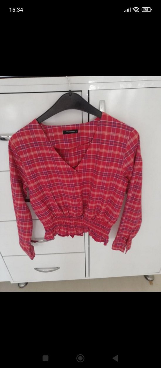 Kırmızı Ekoseli V Yaka Kadın Gömlek