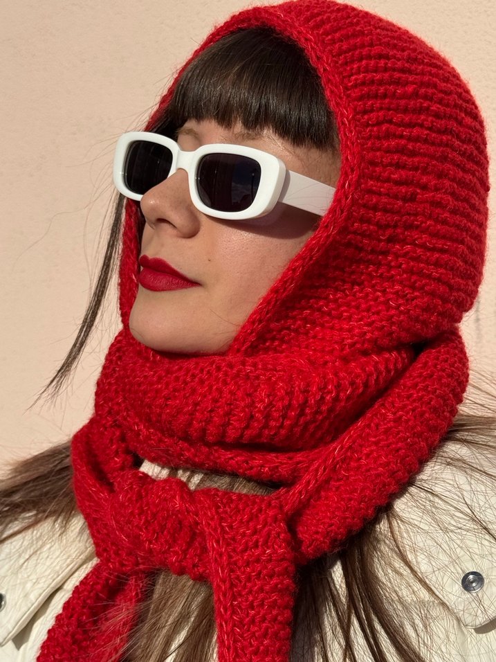 Kırmızı El Örgüsü Kadın şal-balaclava