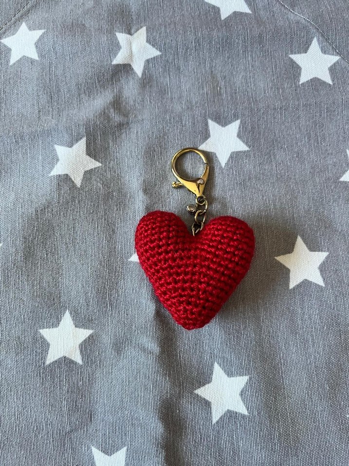 Metal kapamalı kırmızı örgü kalp anahtarlık, sade ve normcore tarzına uygun, rahat bir tasarıma sahip. ❤️