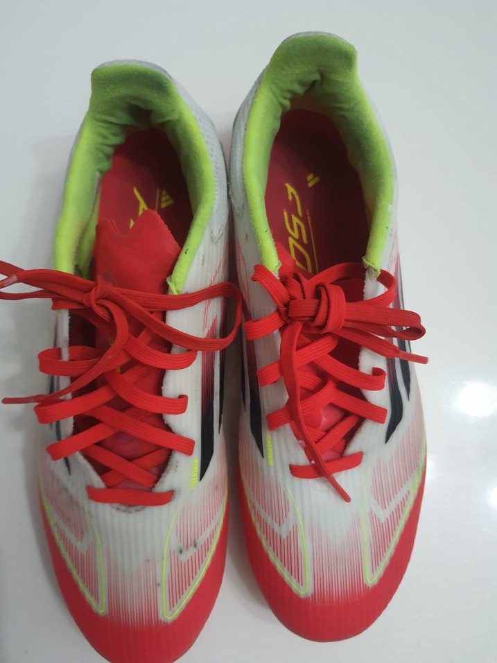 Kırmızı ve neon detaylı, elastik özellikli erkek futbol ayakkabısı. Kauçuk tabanlı, sokak modasına uygun renkli tasarım. ⚽ orjinal üründür çok az kullanildi. hicbir yirtik sökük kirilma yok.