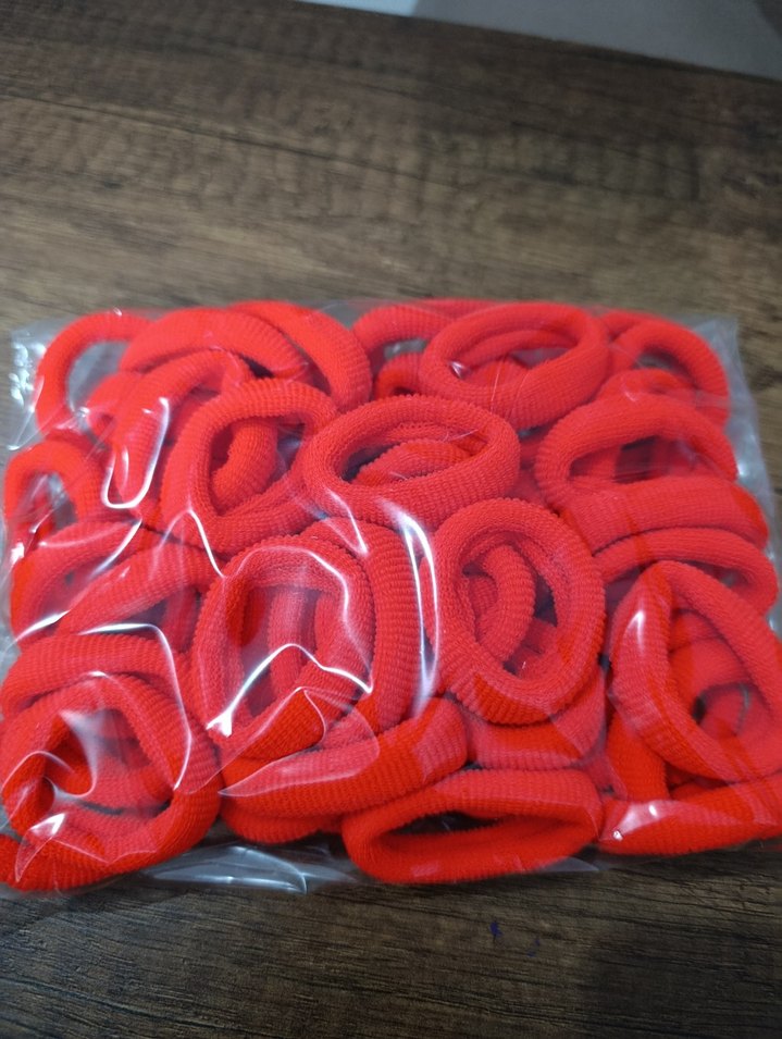Kırmızı elastik çocuk saç tokaları, renkli yılan deseni ile sade ve temel kullanıma uygundur. paket 50 adettir