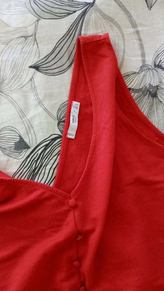 Kırmızı, V yakalı, düğmeli ve kolsuz mini elbise temiz kusuru yok iki kere giyildi l-m