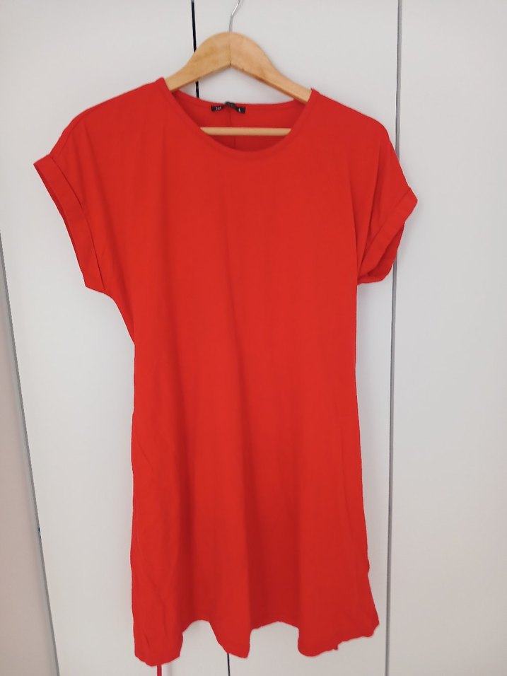 Kırmızı penye kumaştan, kısa kollu ve yuvarlak yakalı kadın tişörtü. Salaş kesimi ve midi boyu ile günlük kullanıma uygun, zahmetsiz şıklık sunar. hiç giyilmedi yazlık kullanıma uygun. M BEDEN uyumlu