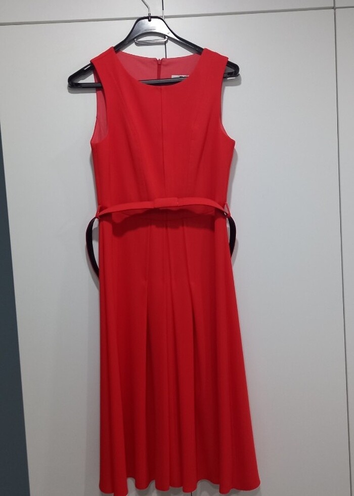38 beden, 2 kez giyildi gayet iyi durumda. Kol altından genişlik 40 cm. Omuzdan boy yaklaşık 105 cm. Tok bir kumaşı var iç göstermiyor