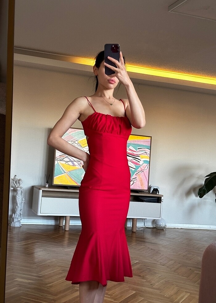 Kumaşı ve kalıbı çok güzel. Kedilerim eteklerini çekiştirmiş. Fotoğrafını ekledim. Etek kısmını kesip kısa elbise olarakta değerlendire bilirsiniz.