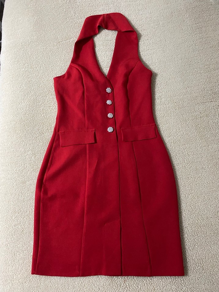 Kolsuz, düğmeli, arkadan fermuarlı mini elbise✨