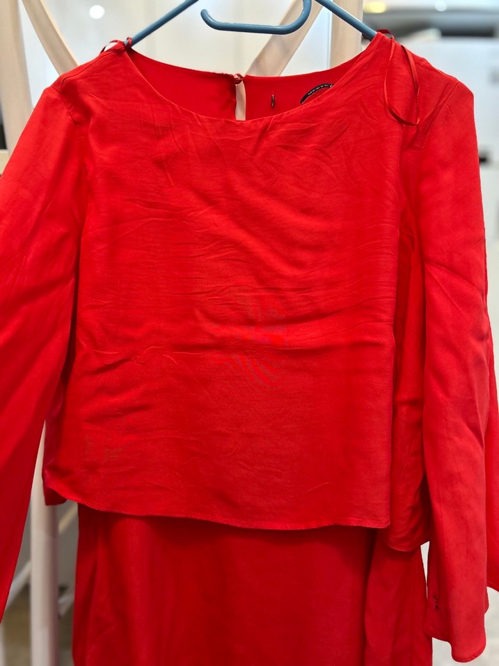 Kırmızı, salaş kesim uzun kollu elbise yuvarlak yakalı ve ipeksi kumaşlıdır. Drapeli tasarımı ve parlak görünümüyle romantik buluşmalar için uygundur. ❤️