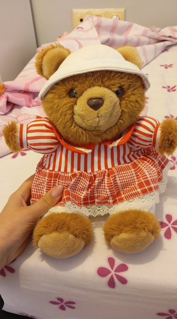 Kırmızı Elbiseli Kahverengi Peluş Ayıcık