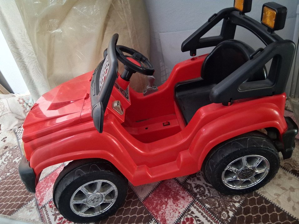 Kırmızı renkli, direksiyon ve gerçekçi tekerleklerle donatılmış renkli tasarımlı akülü binilebilir araba. aküsu yok olmadıgı ıcın satıyorum . Cocjklarım buyuduhu ıcın koyacak yerim olmadığı ıcın KARGO SORUN OLUYOR ELDEN TESLİM İSTANBUL SULTANBEYLİ