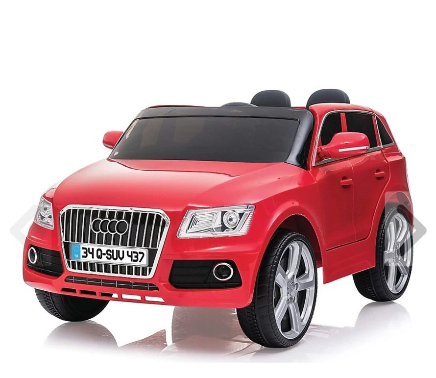 Kırmızı renkli, SUV model elektrikli çocuk arabası. Canlı renkler ve gerçekçi detaylara sahip. Plaka numarası 340-SUV437.
