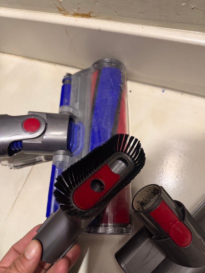 Koyu kırmızı renkte elektrikli süpürge fırçası ve rulo başlıkları, farklı yüzeylerde etkili temizlik sağlar. Ayrıca diğer başlıkları hiç kullanılmadı ve Mallof İstanbul’dan kendi magzasından alındı