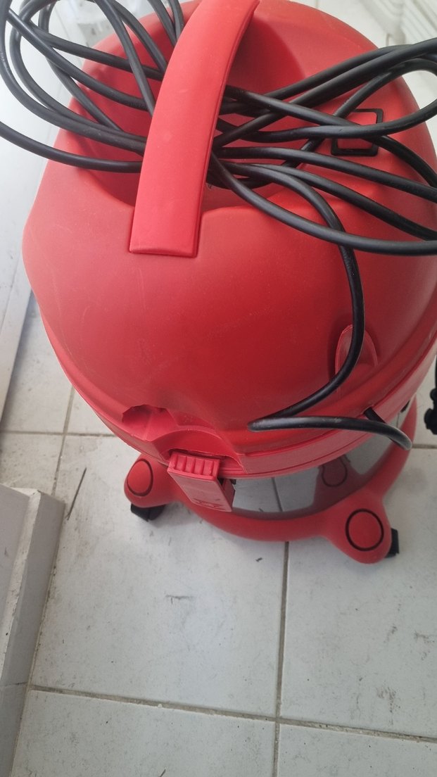Kırmızı renkli, sapında uzun siyah kablosu sarılı ve hareket kolaylığı sağlayan tekerlekleri bulunan elektrikli süpürge. tekerlekleri başka bir Makinamın tekerlekleridir ürünün hiçbir sorunu yok içeride kablosu çıktığı için çalışmıyor tamir ile uğraşmak istemedim Yeni makina Sadece resimde görüldüğü gibi bir yerinde kırık var Onun dışında yeni gibi tüm parçaları mevcut son fiyat iade yok