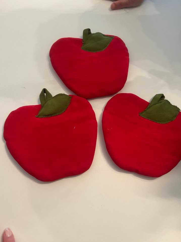 Kırmızı elma şekline sahip, yeşil yaprak detaylı fırın eldivenleri, sıcak ürünleri güvenle tutmak için uygundur. Tane fiyatı 200₺