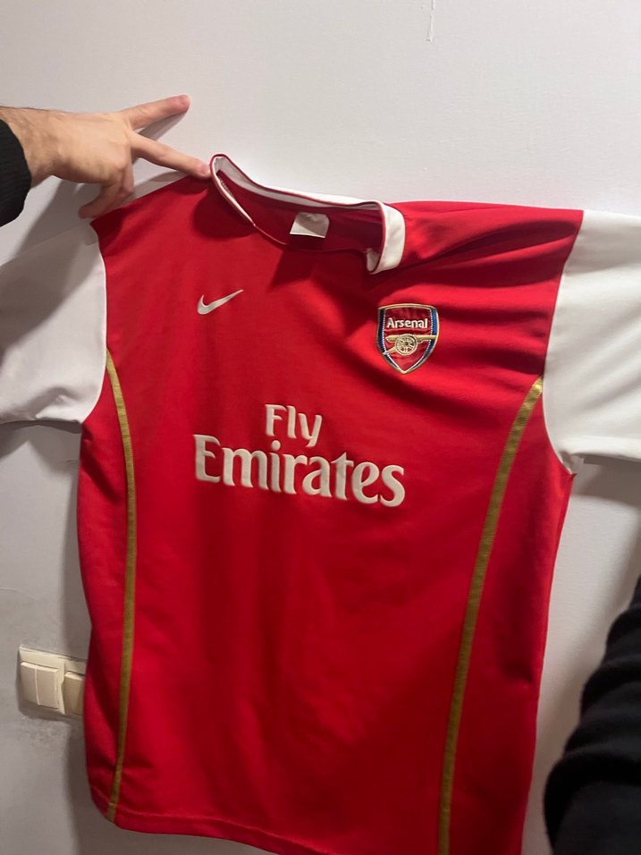 Kırmızı, düğmeli, kolsuz erkek forma, ince ve normal boyda, yuvarlak yakalı ve parlak saten görünümlü kumaştan yapılmıştır. Önünde 'Fly Emirates' yazısı bulunur. ⚽